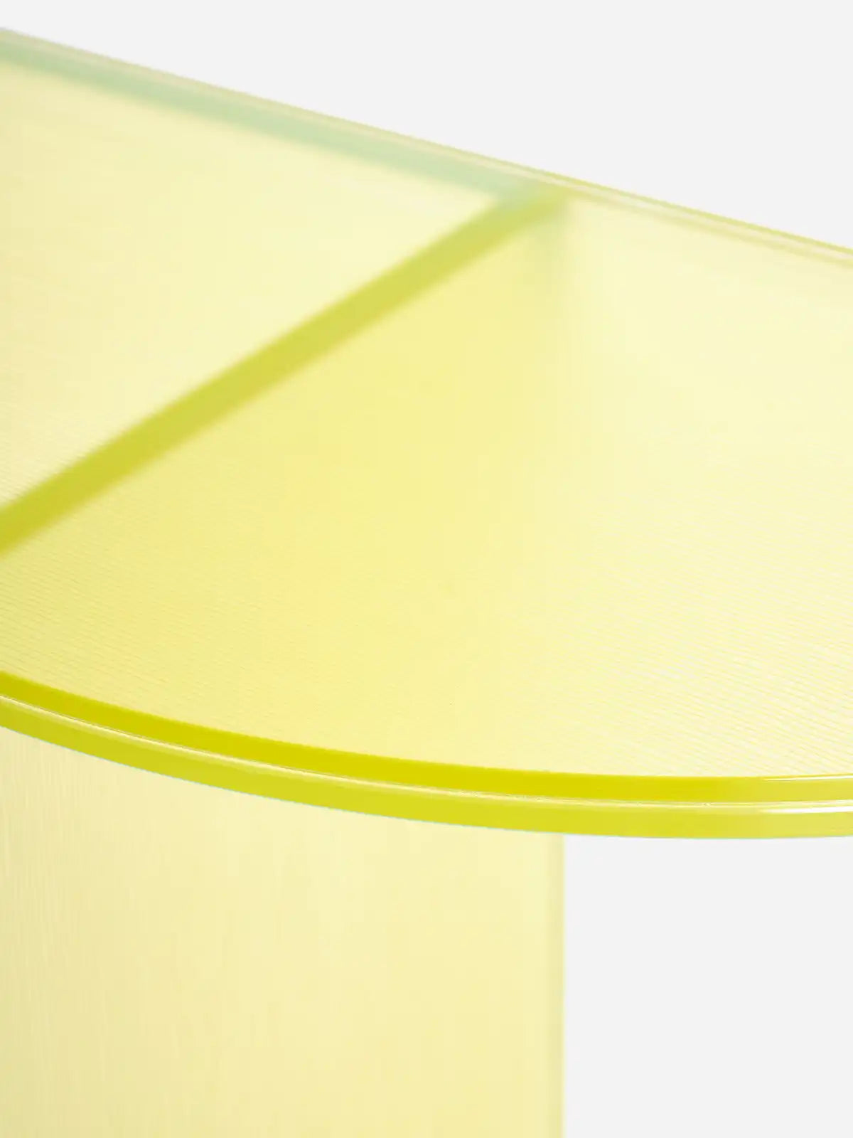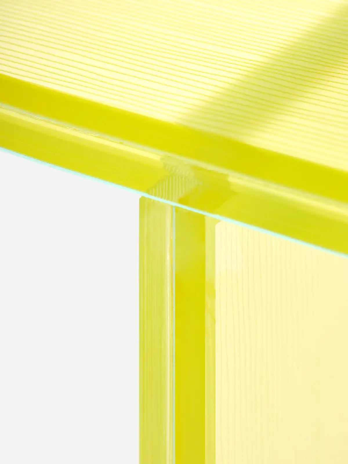 Verre feuilleté texturé, coloris corail : un verre extra-clair laminé avec un verre dépoli et texturé (motif strié) et un film de couleur. Le verre texturé est en surface du plateau et sur les côtés extérieurs des pieds. Epaisseur totale du plateau : 18 mm. L’ensemble est assemblé de façon invisible par collage UV réalisé à la main dans nos ateliers. Variations : coloris corail, vert bouteille, jaune paille Fabrication française, à la demande Délais : 6 semaines -